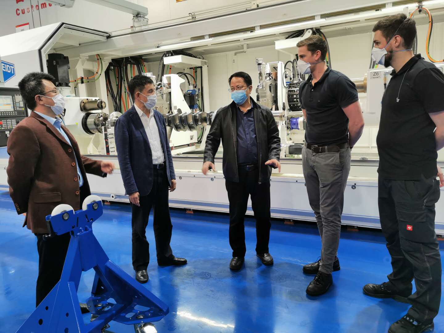 在福達阿爾芬合資公司的生產車間,何新明詢問了企業的復工復產情況,對德籍員工進行了慰問,并再次對德國阿爾芬凱斯勒公司向臨桂區捐贈醫用口罩、德國產測溫儀等防疫急需物資表示感謝。