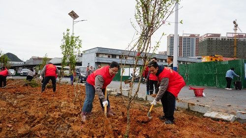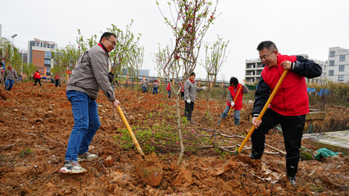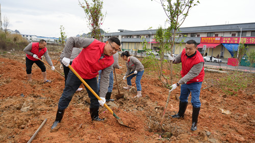 活動現場,黨員們熱情高漲。 大家分工協作,對土地進行平整美化, 清理雜草碎石,翻松土壤,揮鍬鏟土,扶苗填坑、培土,每一個環節都一絲不茍,現場呈現出一派熱火朝天的勞動景象。經過一番辛勤勞動, 一棵棵新栽種的樹苗迎風挺立,為校園增添了一抹新綠,也種下了春天的希望。